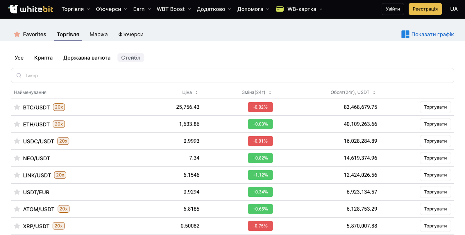 Еще одна особенность стейблкоинов – их высокая ликвидность. Они активно торгуются на всех централизованных криптоплощадках. Например, пользователи крупнейшей европейской криптобиржи с украинскими корнями WhiteBIT могут торговать стейблкоинами, например, с привязкой к доллару – Tether (USDT), TrueUSD (TUSD), USD Coin (USDC), DAI; евро – Tether EURt (EURt); бразильскому реалу – Brazilian Digital Token (BRZ).